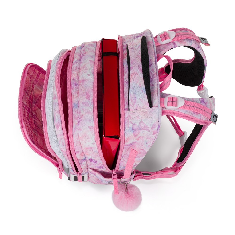 Batoh je vhodný pro školačky od 1. do 3. třídy. Díky lehké konstrukci a stabilizačním prvkům dobře sedí i drobnějším dětem.